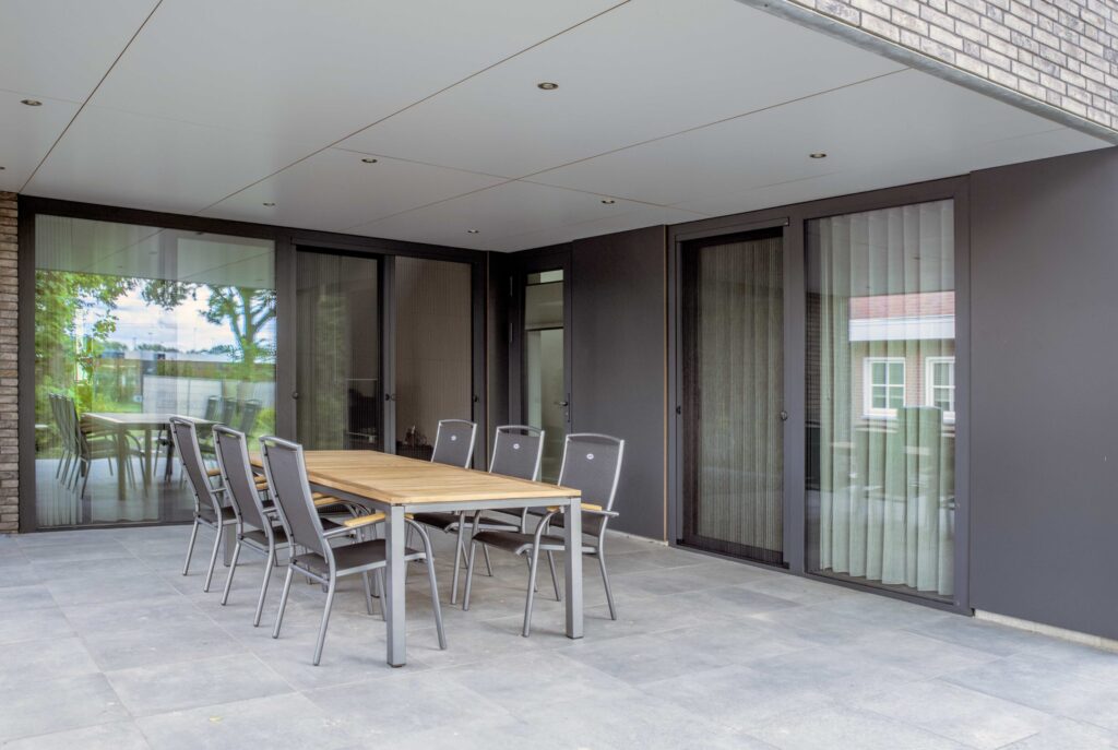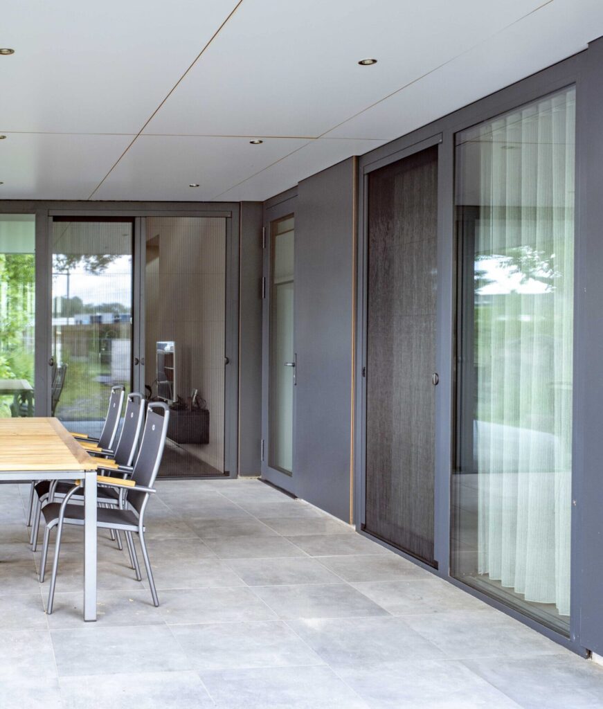 In overleg met de architect en afgestemd op hun wensen heeft atoom13 de MB 77-schuifpui en MB 86-raamkozijnen geleverd, welke zijn toegepast in alle ramen en deuren van de woning. Voor een uniform en stijlvol resultaat zijn de aluminium deurprofielen daarnaast gecombineerd met duurzame IsoStone dorpels, wat bijdraagt aan de esthetiek én isolatie van het huis.